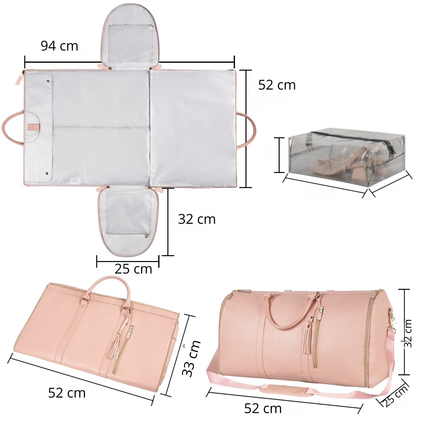Använd som handväska, klädpåse eller sportväska. -